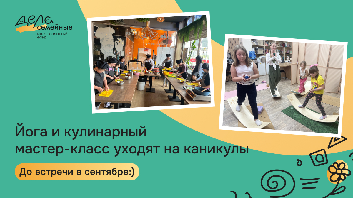 Дорогие друзья, наши занятия по йоге и кулинарные мастер-классы временно приостанавливаются на период летних каникул.